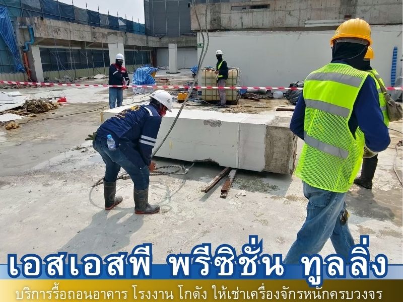 รื้อถอนทุกส่วน: รื้อถอนส่วนควบอาคาร, รื้อหลังคา-โครงสร้างเหล็ก, ทุบทำลายคอนกรีต, ทุบพื้น และขนย้ายเครื่องจักร